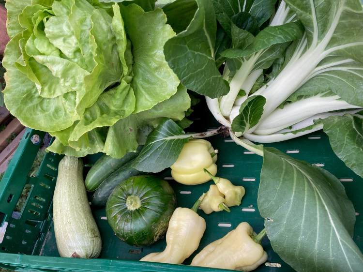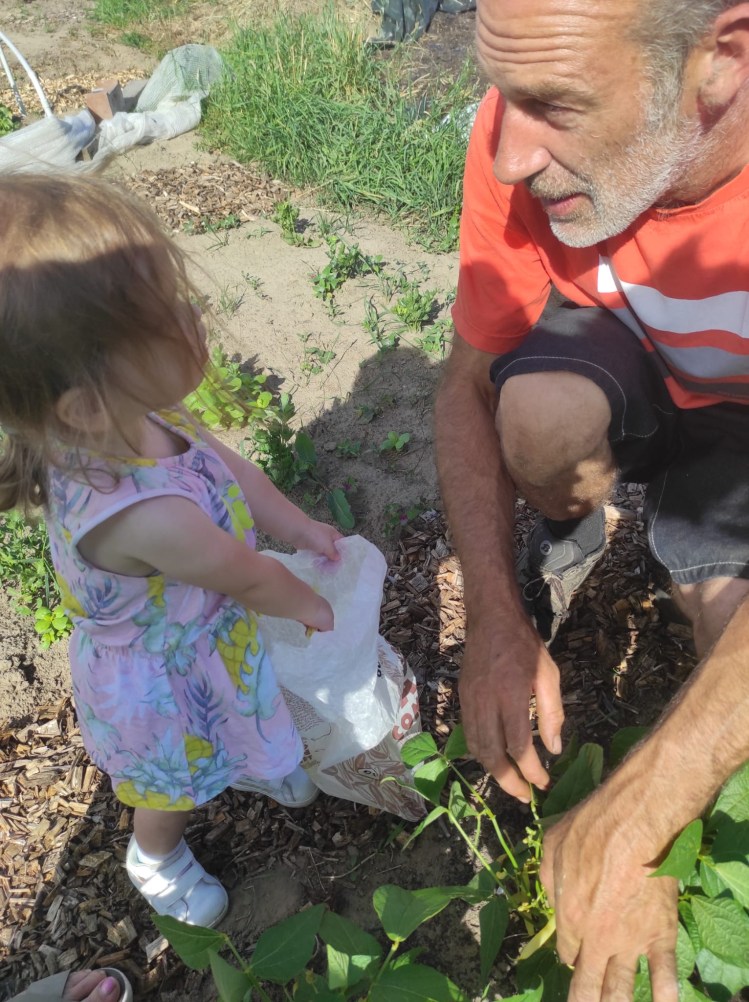 Ja zo voelt het nu op ons veld, de wind door je haren, het ruisen van de bomen dat klinkt als de golven, en vandaag weerklonken zelfs exotische klanken tussen de bamboestokken. Snoepend van frambozen en troskesbezen maken we paadjes onkruidvrij. Knabbelend van een zappittho helpen we de boontjes langs de stokken leiden en dieven we de tomaten. We wensen jullie heerlijke rustige dagen.