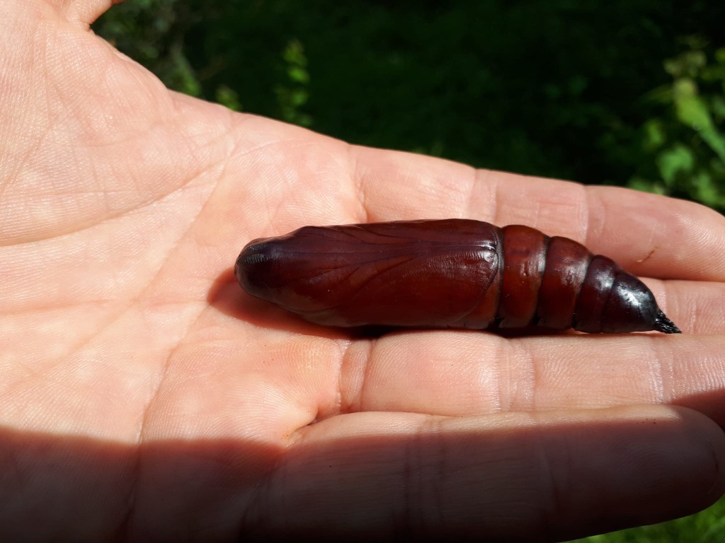 De pop van de tweede rups werd gecontroleerd en ziet er goed uit. Volgens Ruben van Natuurpunt is de pop nog steeds vitaal. Aan de kleur te zien is het nog even wachten op de nachtvlinder. We houden jullie op de hoogte.