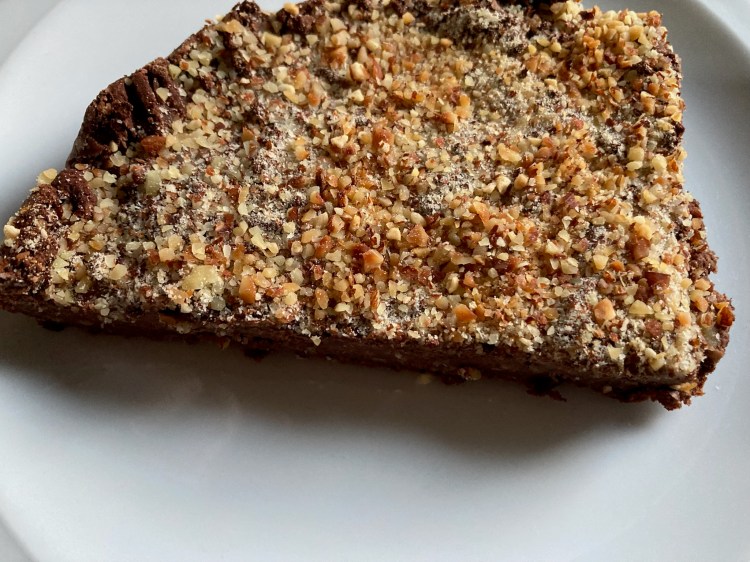 7. Strooi de rest van de noten erover en zet de ovenschaal in de oven gedurende 35 minuten. Check of de brownies gaar zijn met een satéprikker. Smakelijk.