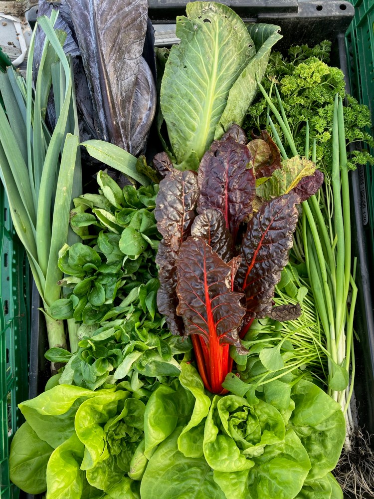 Rode sla, paksoi en spinazie zijn oogstklaar.