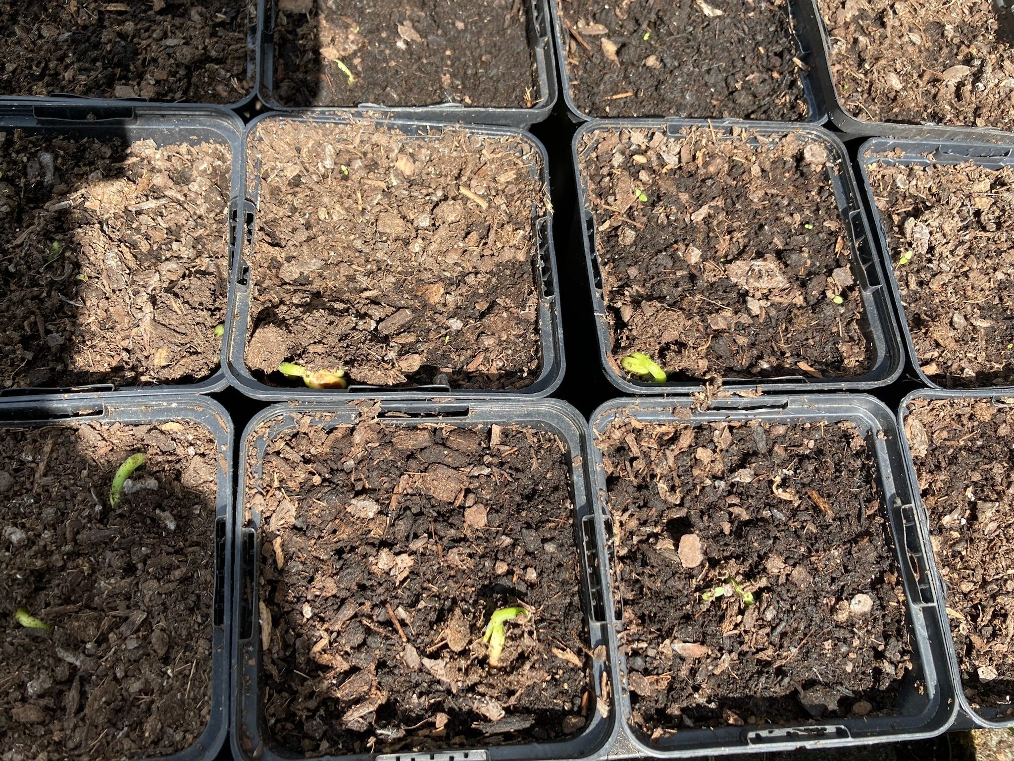 Elke dag gaan we kijken. Is er al beweging? Gisteren was de grond wat gebarsten en vandaag, hoera, zien we de eerste groene knopjes, de boontjes komen uit! Wat een plezier om te wachten op het uitkomen van zaadjes. Wonderlijk hoe een sprietje of blaadje zoveel blijdschap kan geven. Het zichtbaar boller worden van de bloemkolen zorgt dan weer voor dat tikkeltje extra energie om nóg een gieter water te halen. Groei, plantjes, groei!