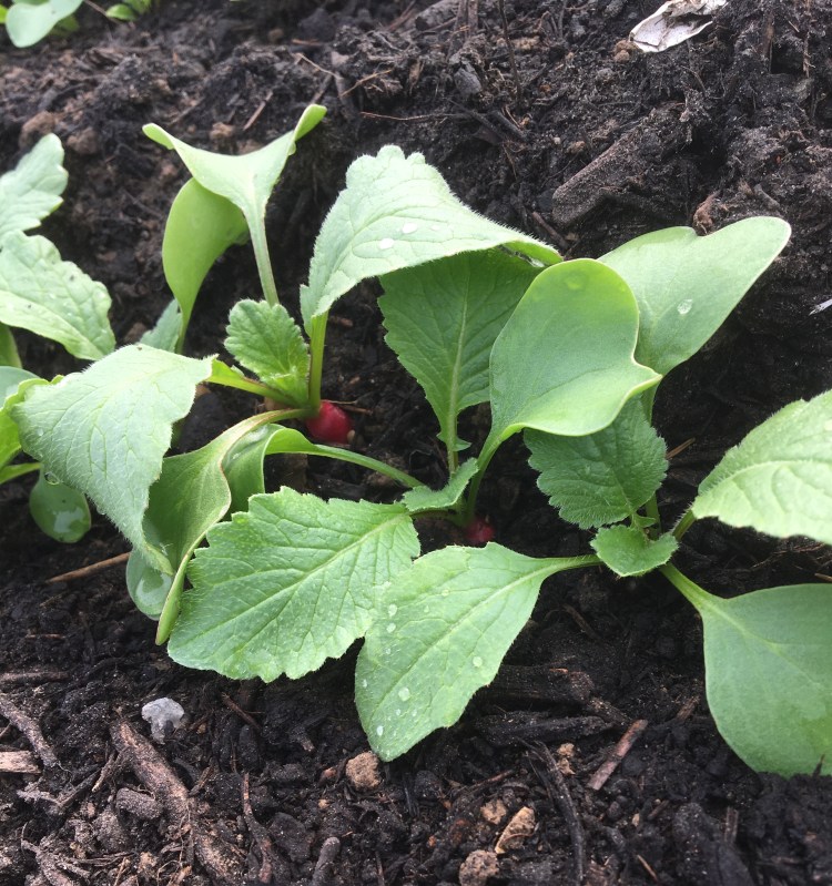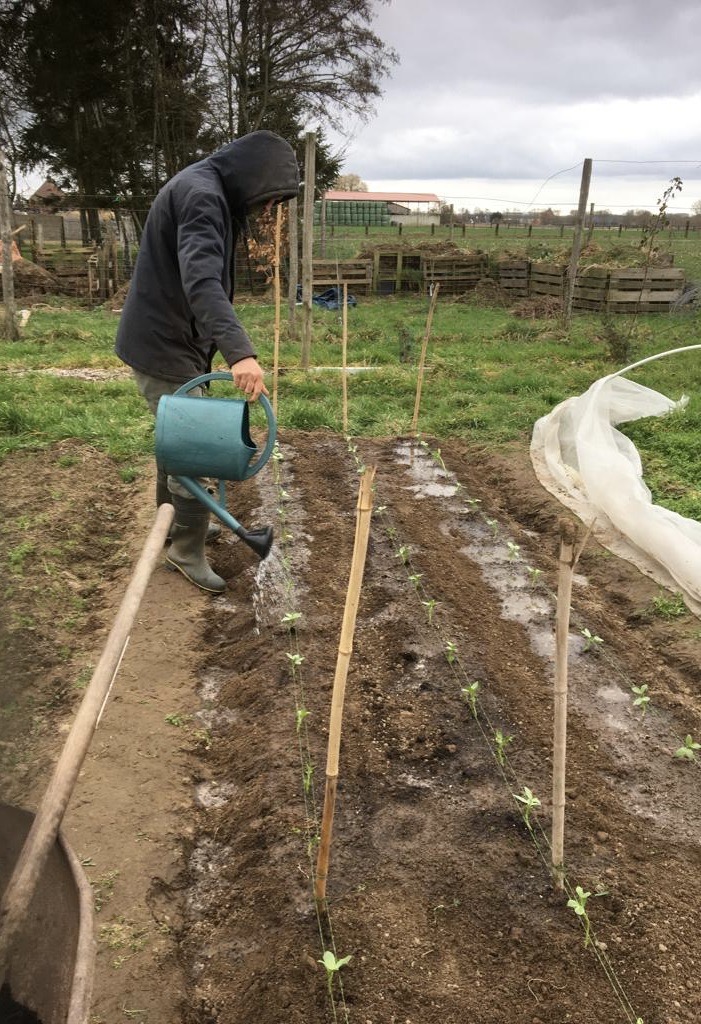 Deze week zaaiden we 3 variëteiten schorseneren. Hun bijnaam keukenmeidenverdriet danken ze aan het schilwerk met bijhorende bruine handen. Toch kijk ik uit naar de zachte smaak van deze groente. We zaaiden ook pastinaak, één van mijn lievelingsgroenten en wiedden het onkruid tussen de worteltjes. De paprikaplantjes kregen een P9-potje en een plekje in de serre. De rode bolletjes van de radijsjes laten zich reeds zien. Door de droogte hebben we wel al wat moeten gieten, dus hopelijk valt de aangekondigde regen uit de lucht.