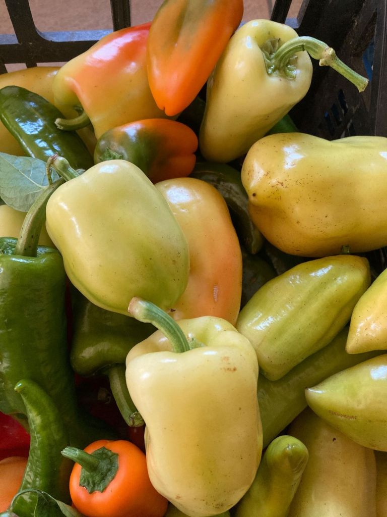 - paprika: gele, oranje, rode, groene puntpaprika’s en blokpaprika’s