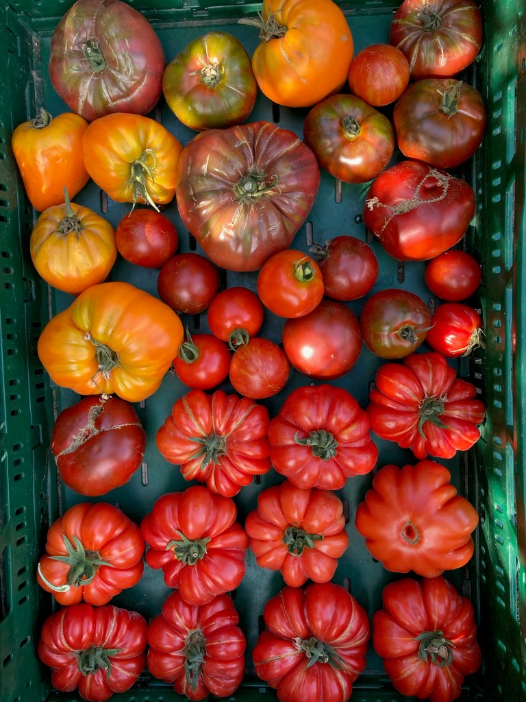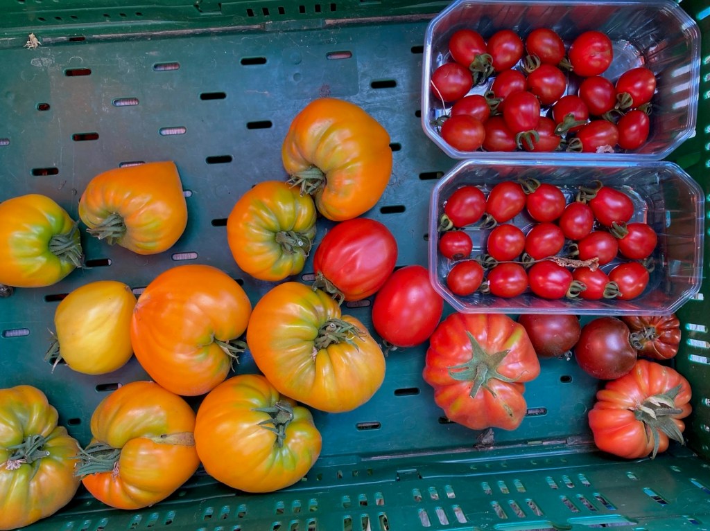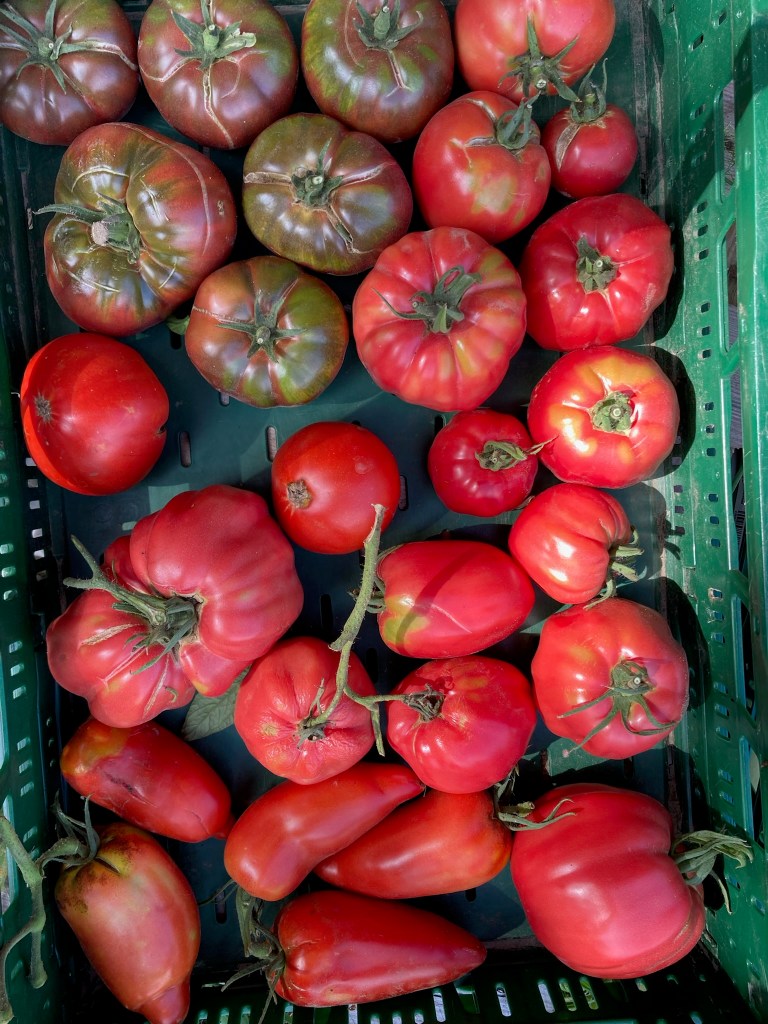 - tomaten: gele en rode snoep- en smaaktomaten (o.a. coeur de boeuf)
