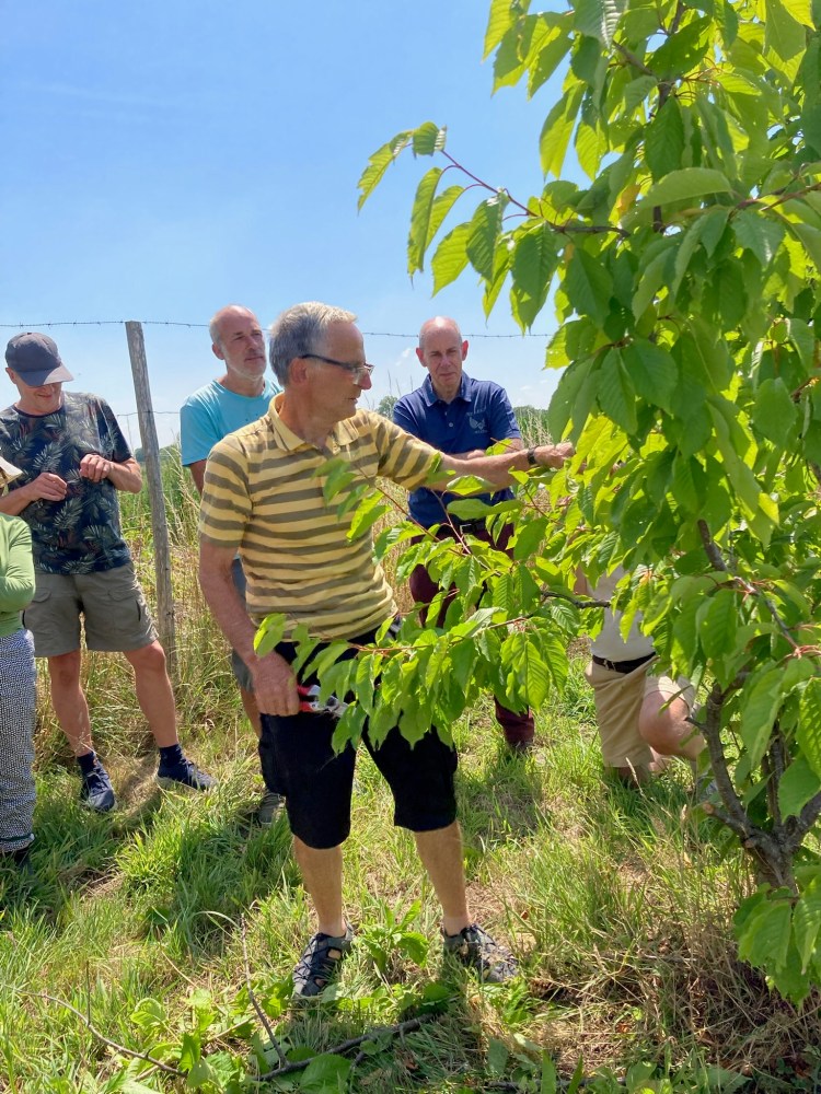 Misschien was ‘licht’ wel het meest gebruikte woord tijdens de zonovergoten demo zomersnoei georganiseerd door Velt Dendermonde op ons veld. Guy De Kinder demonstreerde hoe je de snoei van kerselaar, pruim, perzik en nectarine best aanpakt. Hij lichtte elke stap uitgebreid toe met achtergrondinformatie. Tussendoor maakte hij de vergelijking met de appel- en perenboom en gaf hij uitleg bij kiwibes en druivelaar. Met proevertjes, een hoofd vol opgedane kennis, een dankbaar gevoel en een uitgebreide to do lijst sloten we deze zaterdag af.